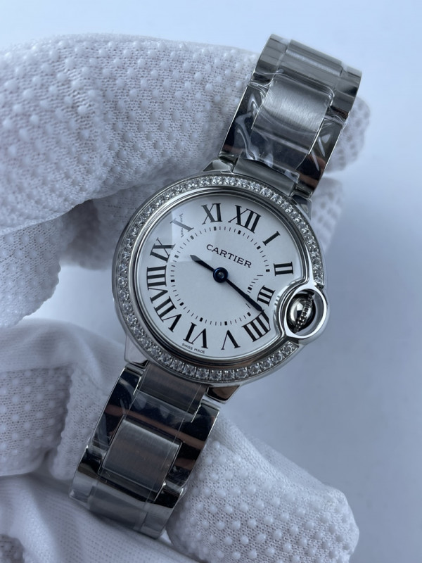 (준비완료/특급배송)NO.1653/AF공장 까르띠에 발롱블루 28MM 화이트 다이얼 다이아몬드베젤